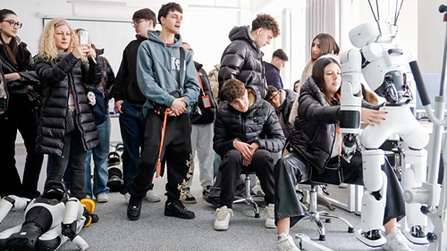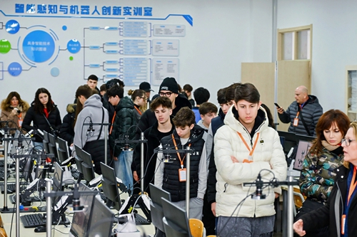 代表团先后参观了青职・海信数字电商产业学院、忆·簪花工作坊、3D打印实训室、具身智能机器人实训基地等特色实训场所。意大利师生深入了解学校与企业深度产教融合成果,感受“实训-实习-就业”一体化育人模式,体验传统簪花文化与3D打印技术,观摩机器人智能交互等前沿应用,领略智能制造魅力。