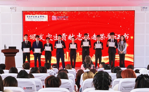 旅游学院党总支副书记刘海燕为综招志愿者颁奖