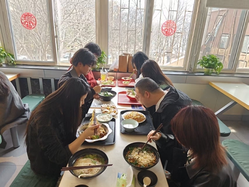 师生在青岛大学仁园餐厅品尝菜品