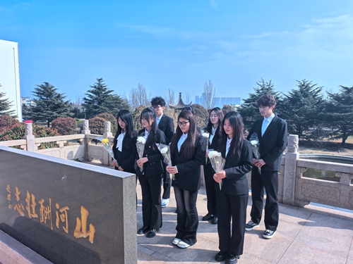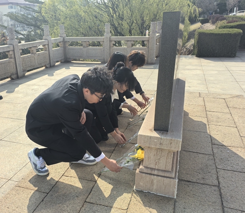 活动中,团学骨干前往黄岛油库烈士纪念亭,深切缅怀在黄岛油库大火中英勇牺牲的消防战士。学生们整齐列队于纪念碑前,肃立默哀,向英烈致以最深切的悼念。随后,大家依次敬献鲜花,表达对英雄的无限追思与崇高敬意。