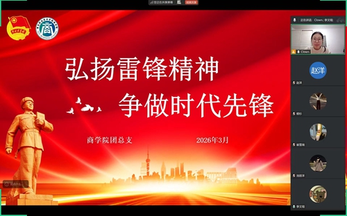 商学院各团支部召开了“学习雷锋精神”线上主题团课。团支书带领同学们重温雷锋事迹,深刻领会雷锋精神的时代内涵与实践要求,号召大家将“奉献、友爱、互助、进步”的志愿精神融入学习生活,从身边小事做起,用责任与担当书写青春答卷。全体学生积极响应,主动投身社区环境治理、扫雪除障、图书馆志愿服务、社区食堂助老便民等公益行动,以多种形式传递温暖,用实际行动践行雷锋精神。