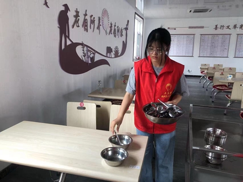 会计24-2班王佳雨同学在社区食堂参加助老便民服务