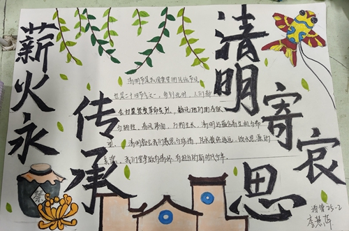 此次主题团课以清明文化为脉络、薪火相传为内核,围绕“追思先烈、传承薪火”主题,有序开展系列学习教育活动。各团支部书记结合鲜活案例,系统讲解了清明节的传统文化底蕴与缅怀先烈的时代价值,深入阐释清明精神与薪火相传的内在联系,帮助团员精准把握精神内涵、筑牢思想根基。为强化学习成效,活动设置了网上祭扫、集体诵读、手抄报创作等环节。同学们登录网上祭扫平台,通过鞠躬、留言等方式云端缅怀革命先烈;团支书代表领读,全体同学齐声诵读,让薪火相传的理念深入人心;各班还以“清明追思、薪火相传”为主题创作手抄报,用笔墨寄托哀思,深化对活动主旨的理解。
