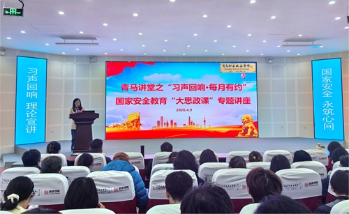 为迎接第11个全民国家安全教育日,深入贯彻落实总体国家安全观,4月9日,马克思主义学院特邀青岛西海岸新区国家安全局专家做客青马讲堂“习声回响·每月有约”,与师生共上一堂别开生面的国家安全教育“大思政课”。马克思主义学院全体教师和学生代表参加活动。