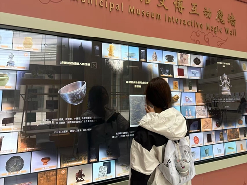 活动期间,同学们参观了馆藏珍品展区,近距离观摩古籍、书画、器物等珍贵文物,认真聆听博物馆工作人员关于智慧博物馆建设、传统文化数字化保护的讲解,系统学习了文物三维建模、古籍数字化扫描、数字藏品馆建设的相关知识与技术原理。同学们还现场体验了馆内VR虚拟展厅、三维文物库等场景,直观感受云计算、大数据在文物保护与文化传播中的实际应用。