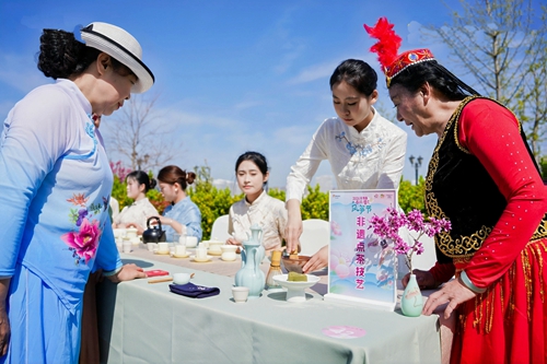 志愿者展示茶艺
