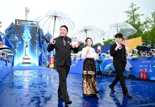 电影主创人员佩戴我校非遗簪花文创作品亮相北京国际电影节开幕式红毯