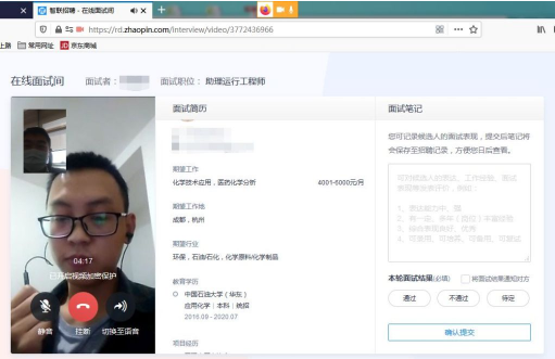 图为中国石油大学(华东)应届毕业生参加在线面试。受访者提供