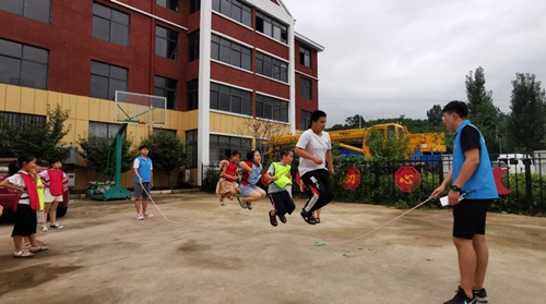 志愿者同孩子们一起参加跳大绳活动