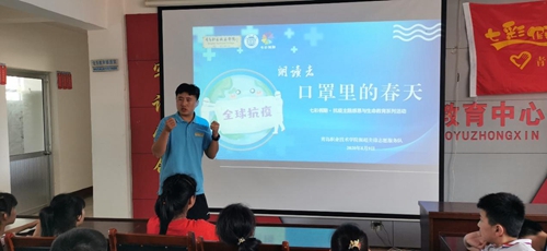 8月9日下午,青岛职业技术学院关爱农村留守儿童“七彩假期”志愿服务项目团队——振超先锋志愿服务队在我院实践育人示范基地(夏蔚镇西社区)以“口罩里的春天”为主题,围绕“战疫”开展感恩与生命教育主题活动。