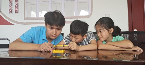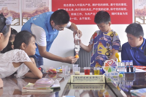 志愿者同孩子们一起动手实验