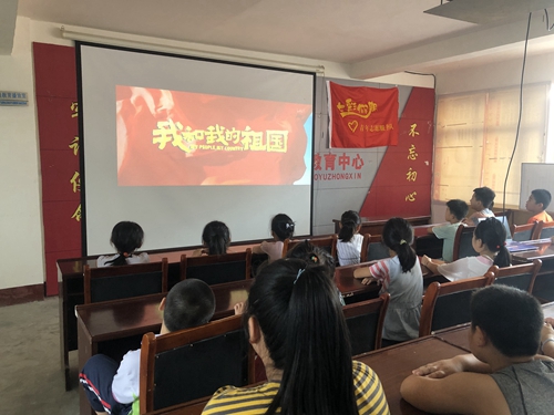 当天下午,志愿者们在夏蔚西社区支教点带领孩子们开展了“我和我的祖国”主题教育活动,通过“四个一”的多元化形式抒发对祖国的热爱之情和立志争当时代新人的坚定信念,即做一面旗帜:以泥塑的形式做国旗、党旗、团旗、少先队旗,寓教于乐带领孩子们学党史、团史和少先队史;看一部电影:收看电影《我和我的祖国》,聆听新中国成立70年间普通百姓与共和国息息相关的故事;唱一首赞歌:学唱歌曲《我和我的祖国》,陶冶爱国情操,激发爱国情怀;讲一个故事:讲述自己熟知的革命英雄故事,汲取青春正能量。