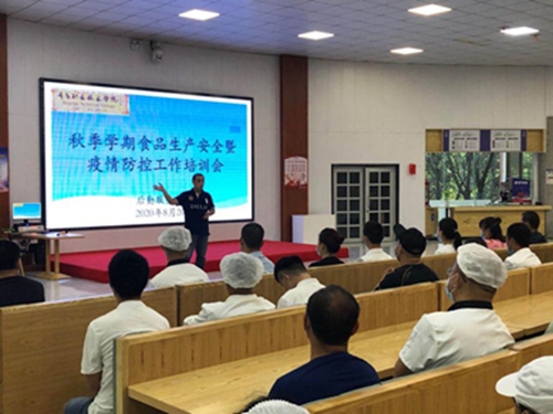 学校还组织食堂食品安全管理员、厨师长及其他食品从业人员开展了秋季学期食品生产安全暨疫情防控工作培训和考试。围绕国家市场监督管理总局印发的《餐饮服务食品安全操作规范宣传册》《山东省学生营养健康与学校食品安全提升实施意见》等,结合实际从原料管理、加工制作、清洗消毒、人员要求等方面,强化学校餐厅从业人员的食品生产安全意识和操作技能,筑牢了从业人员的安全防疫意识,提高了食堂从业人员在疫情防控常态化形势下的食品安全生产责任意识。