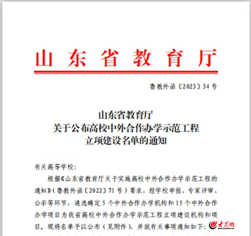 大众网:青岛职业技术学院获山东省高校中外合作办学示范工程建设立项