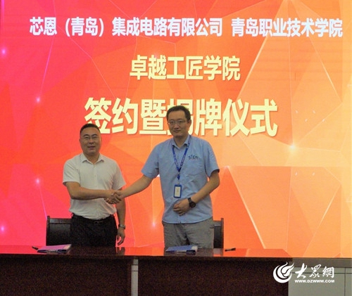 会议为市西海岸新区教育和体育局、青岛职业技术学院和海尔卡奥斯物联科技有限公司共建的青岛西海岸新区工业互联网实践中心举行了揭牌仪式,为芯恩(青岛)集成电路有限公司与青岛职业技术学院共建的“卓越工匠学院”举行了签约及揭牌仪式。