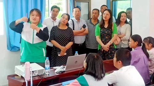 在临洮县洮阳镇西湖社区现场观摩师生合唱《少年中国说》