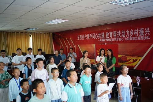 20日下午,团队一行来到临洮县南屏镇南屏村,看望在此进行暑托支教的青岛职业技术学院生物与化工学院蘑菇云“两弹一星”精神宣讲团和“绿喇叭”志愿服务队,现场参观了海洋文化和“萌萌化学家”化学小实验课堂,走访了学生宿舍,并与参加暑托的学生志愿者进行交流,听取了团队关于此次暑托支教课程设置、活动安排的汇报,了解了该团队通过黄河文化、节水护水、趣味化学小实验、海洋文化、手工皂制作等课程,促进地域、文化双向交互育人的做法,以及以临时家长学校建设为依托,开展留守儿童家访调研的情况。临洮县副县长杜玲对志愿服务团队的工作表示肯定,期待后续围绕南屏山区留守儿童志愿服务工作和区域经济发展,进一步深化合作,让山区更多的孩子树立良好的学习习惯,也期待通过提升临洮县小学生水资源保护意识,协同做好黄河支流洮河的生态保护工作。邢广陆表示,青岛职院愿发挥志愿服务优良“基因”,聚焦临洮县支教志愿服务、乡村旅游资源开发等需求,加强对接支持力度,形成多维度深层次的高质量合作,为东西部协作贡献青职力量。