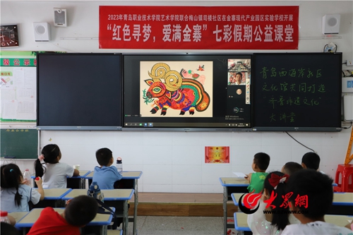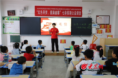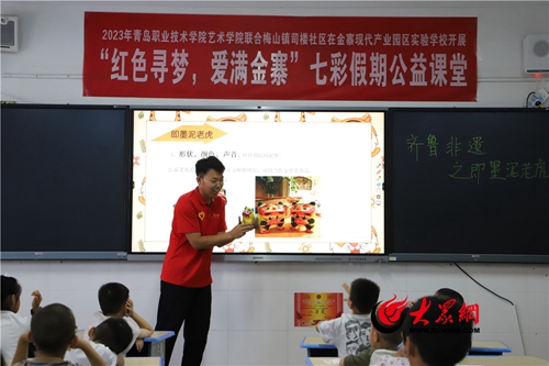 7月13日至23日,青岛职业技术学院艺术学院“红色寻梦,爱满金寨”七彩假期志愿服务示范团队12名师生在安徽省金寨县司楼社区开展公益艺术课堂志愿服务,重点围绕“黄河非遗弘扬宣传”“红色文化赓续传承”“艺美乡村文化振兴”“关爱帮扶留守儿童”等专项服务板块,创新实施“美·德”融合课程,研发22门适合金寨少年儿童学习的特色文化课程,充分发挥艺术学科优势,赋能七彩假期。