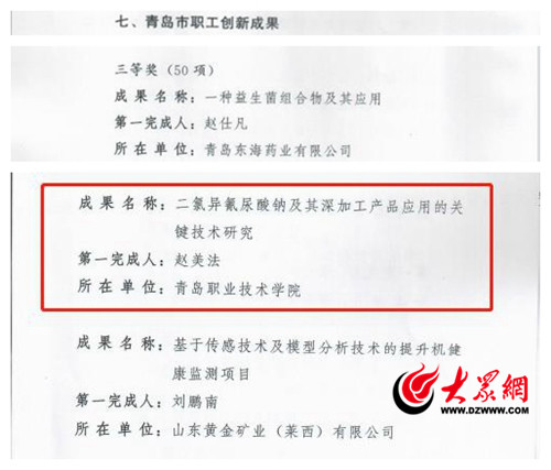 发布会上,青岛市总工会公布了2023年度“青岛工匠”、青岛市全员创新企业、劳模和工匠人才创新工作室创新型班组、职工创新能手、职工创新成果名单,青岛职业技术学院教师和团队凭借过硬的专业技能和精益求精的工匠精神光荣上榜。其中,海尔学院教师、高级技师畅建辉获评“2023年度青岛工匠”,信息学院教师团队——新一代信息技术产业对接班组获评“青岛市创新型班组”,生物与化工学院教授赵美法作为第一完成人的“二氯异氰尿酸钠及其深加工产品应用的关键技术研究”成果获评“2023年度青岛市职工创新成果”三等奖。
