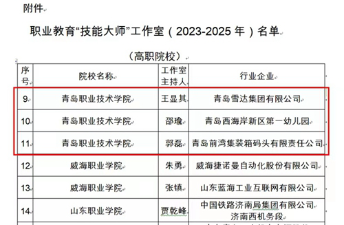 人民数字联播网:青岛职业技术学院3支教学团队获批山东省职业教育“技能大师”工作室