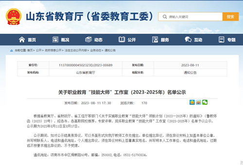 山东省职业教育“技能大师”工作室按照“政校企共建、周期式培养、师徒制管理”的方式运行,经过3年建设,培养一批高技能师资和技术技能人才,研发一批产学研用合作创新项目,推进校企合作、产教融合、科教融汇,领航带动各地各校组建覆盖重点产业行业和急需紧缺职业工种的“技能大师”工作室,服务职业教育高质量发展。