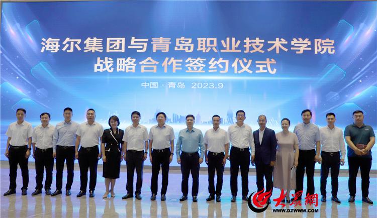 自2002年海尔集团与青岛职业技术学院签署第一个十年战略合作协议并共建“海尔家电学院”以来,在市委、市政府大力支持下,校企双方以时代、经济、产业发展为舵,以职业教育政策供给为锚,先后联合创建国家示范性高职院校、联合发起中国家电业智能制造联盟、联合申报第一批现场工程师专项培养计划项目、联合申报并获批国家级职业教育“双师型”教师培训示范基地、山东省高等学校黄河流域生态保护和高质量发展“黄河流域智能装备制造技术协同创新中心”、联合组建西海岸新区产教体,青岛职业技术学院与卡奥斯共同成立了工业互联网学院,积极助力青岛建设世界工业互联网之都,有效形成校企合作服务国家战略、服务地方经济社会发展的典型范式并获教育部肯定推广。目前,通过共建专业、共建课程、共享师资、共享教材、工学交替,海尔集团已成为青岛职院家电类、机电类、软件类、艺术类等专业的校外教学基地、实训基地、就业基地和师资培训基地,先后投资近千万元在青岛职业技术学院建成中央空调全球物联服务学院和智能家电实训基地;青岛职院也成为海尔集团人才培养培训输出基地、培训教材产出基地和应用技术研发攻关基地,累计向海尔集团输送毕业生近3000名,培养培训智能制造行业员工35000余名。