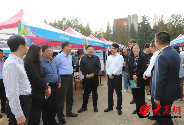 校领导与市、区人社部门领导在招聘会现场巡场指导
