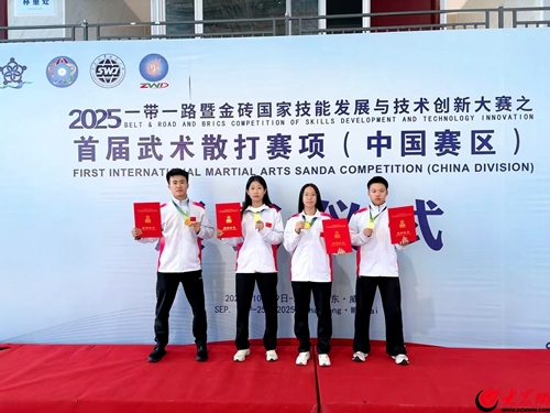 10月19日至25日,2025年“一带一路”暨金砖国家技能发展与技术创新大赛首届武术散打赛项(中国赛区)总决赛,在山东外事职业大学举办,来自全国55所院校的381名运动员、领队及指导教师参加比赛。青岛职业技术学院代表队在教师陈曦、赵燕的指导下斩获四金一银,其中,散打项目获三枚金牌,武术套路项目获一金一银,实现了学校在金砖系列赛事中的全新突破。
