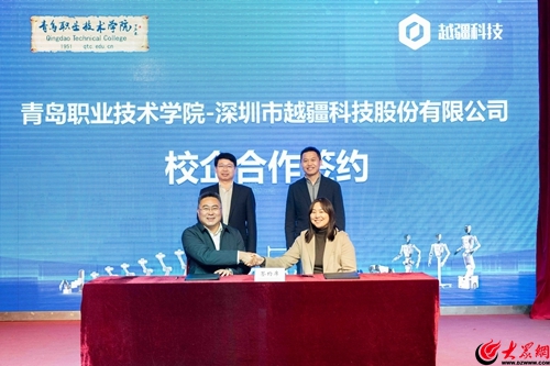 12月29日下午,青岛职业技术学院第六期“智汇青职·企业家讲堂”在艺术厅开讲。深圳市越疆科技股份有限公司创始人兼CEO刘培超受邀作专题报告。活动分为校企合作签约与揭牌仪式、“智汇青职·企业家讲堂”两个部分。青岛职业技术学院党委书记秦青松,党委副书记、校长邢广陆,党委班子成员,部分处级干部、二级学院师生代表及企业嘉宾共400余人参加活动。